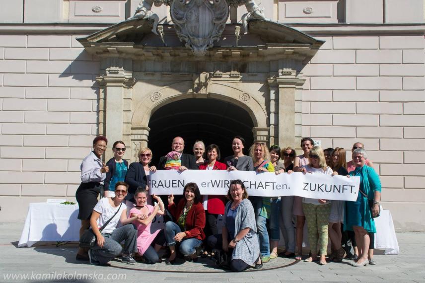 Die oberösterreichische Frauen-Regierung tagte ebenfalls am 7. Juli vor dem Landhaus. Es wurde in diesem Rahmen ein Mann* als Landesrätin für Männergelegenheiten und Kinderbetreuung angelobt. Das Thema zu dem Beschlüsse gefasst wurden war diesmal Selbständigkeit/Wirtschaft/Karriere.