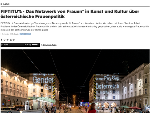 FIFTITU% ist Österreichs einzige Vernetzung- und Beratungsstelle für Frauen* aus Kunst und Kultur.