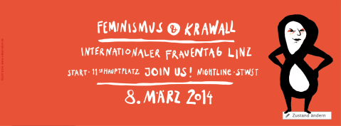 Ein transkultureller, frauenpolitischer Zusammenschluss verwandelt Linz, anlässlich des Internationalen Frauentages, am 8. März 2013 von 12 bis 18 Uhr in eine Bühne für frauenpolitische Forderungen im aktionistischen Gewand.