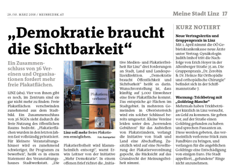 Meinungsfreiheit braucht Plakatierfreiheit - auch in Linz