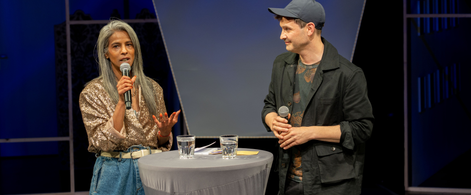 Ein kurzes Intro von Oona Valarie Serbest, Vorsitzende des Linzer Stadtkulturbeirats und FIFTITU%-Geschäftsführerin. Sie hat gemeinsam mit Olivia Schütz, Geschäftsführerin des Theaters Phönix, die Veranstaltung moderiert.
