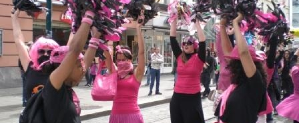 100 Jahre nach der großen Frauendemonstration auf der Wiener Ringstraße im März 1911 dort protestierten die radical cheers von Maiz und fiftitu%. Um ihre Anliegen in einer Aktion zu performen proben die Frauen, die sich im Migranntinnenzentrum und für die Vernetzungsstelle für Frauen in Kunst und Kultur engagieren. Das haben sie zum ersten Mal zum 1. Am innerhalb der Aktion femOffensive 2010 getan. Und sie sind seit dem mit großer Freude dabei.