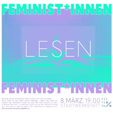 On International Women's Day we cordially invite you to Feminist*innen lesen Feminist*innen at Stadtwerkstatt Linz.