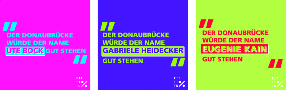 Im Stadtgebiet von Linz gibt es 1.152 Straßennamen und nur 4% davon sind nach Frauen benannt. 2021 wird in Linz die neue Donaubrücke eröffnet und FIFTITU% forderte mit einer Kampagne die Brücke nach einer Frau* zu benennen.