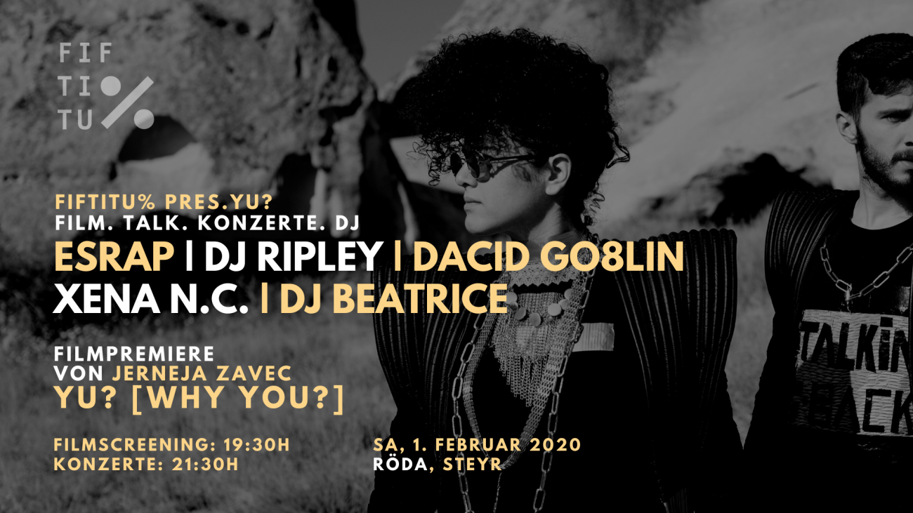 "FIFTITU% pres. YU?“ und lädt am Samstag, den 1. Februar zu einem fulminanten Abend ins Röda in Steyr.