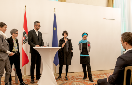 Die Preisverleihung fand im Kongress-Saal des Bundeskanzleramtes statt. Kunst- und Kulturminister Gernot Blümel überreichte die Preisurkunde.