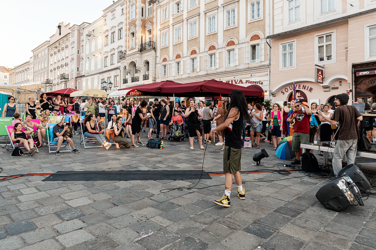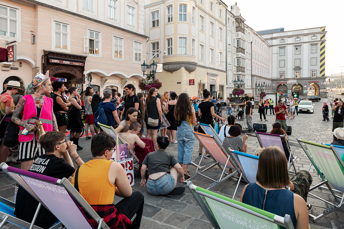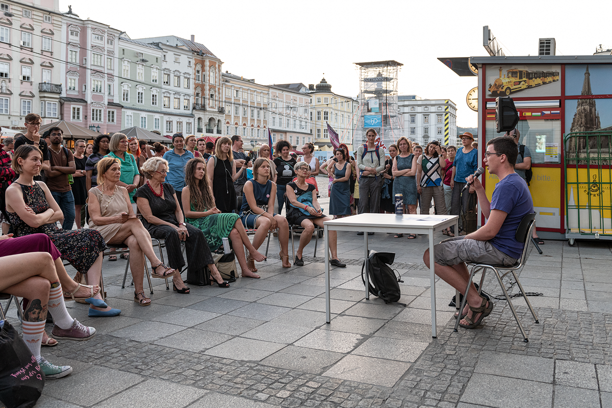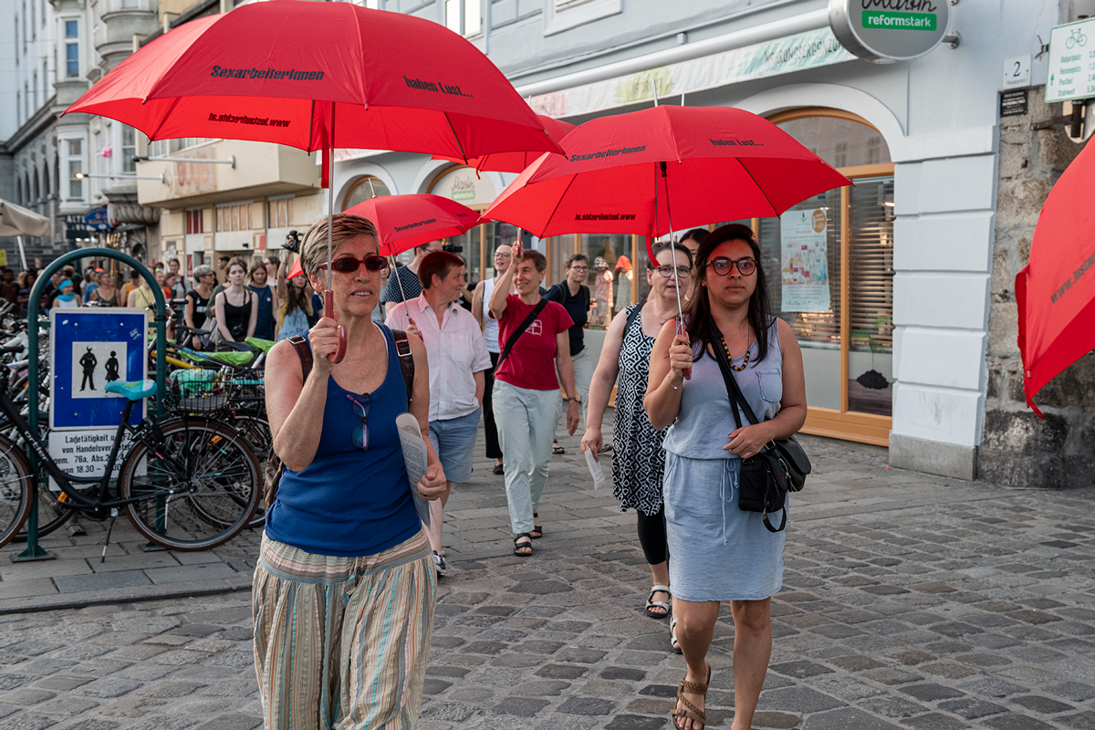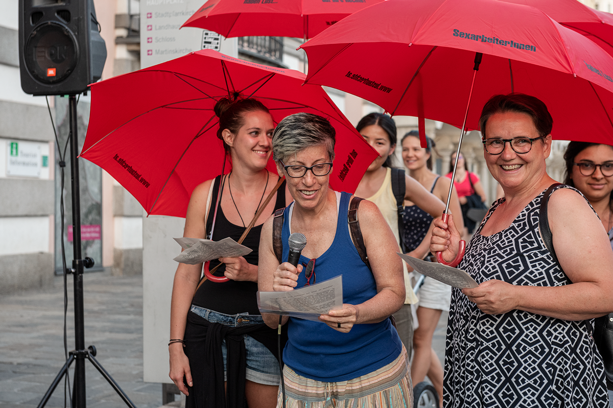 Interventionen : Daniela Brodesser / Bella Diablo / Fatima El Kosht / Wiltrud Hackl / Tobias Humer (VIMÖ) / maiz - Autonomes Zentrum von & für Migrantinnen: Bereich Sex&Work / Alice Moe von Team Dyke March Linz / Elisabeth Murhammer / Susanne Mayrhofer / Julia Pühringer / Abena Twumasi
