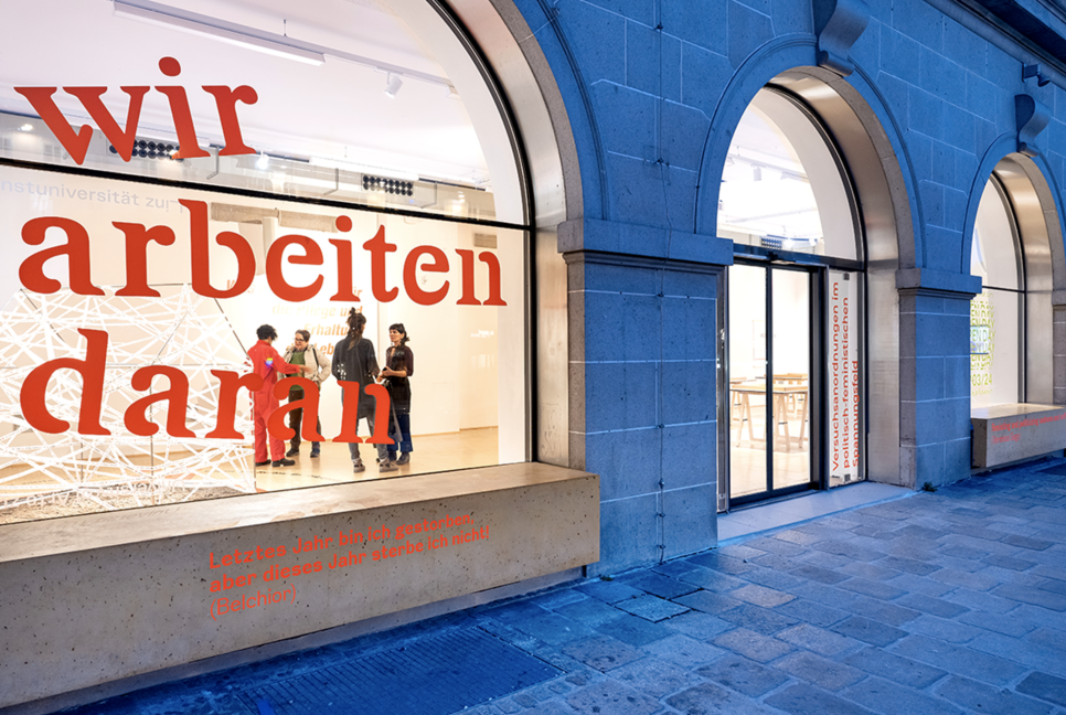 Die dialogische Rauminstallation WIR ARBEITEN DRAN erforscht die Verflechtungen von Kunst, Aktionismus, Forschung, Wissensaustausch und Institutionskritik.