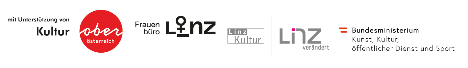 Unterstützt durch Vielen Dank an unsere Fördergeber*innen, privaten Unterstützer*innen, Spender*innen sowie Partner*innen-Organisationen und -netzwerke:Land OÖ – Direktion KulturBundesministerium für Wohnen, Kunst, Kultur, Medien und Sport Abteilung IV/7Linz KulturBundesministerium für Frauen, Wissenschaft und Forschung Sektion IIIFrauenbüro der Stadt LinzRadio FROdorf tvservus.at